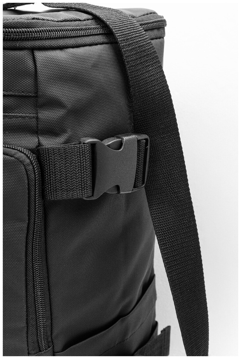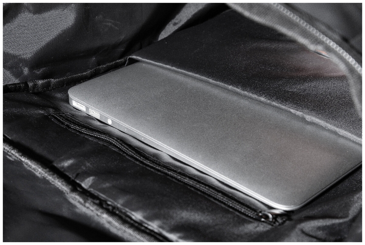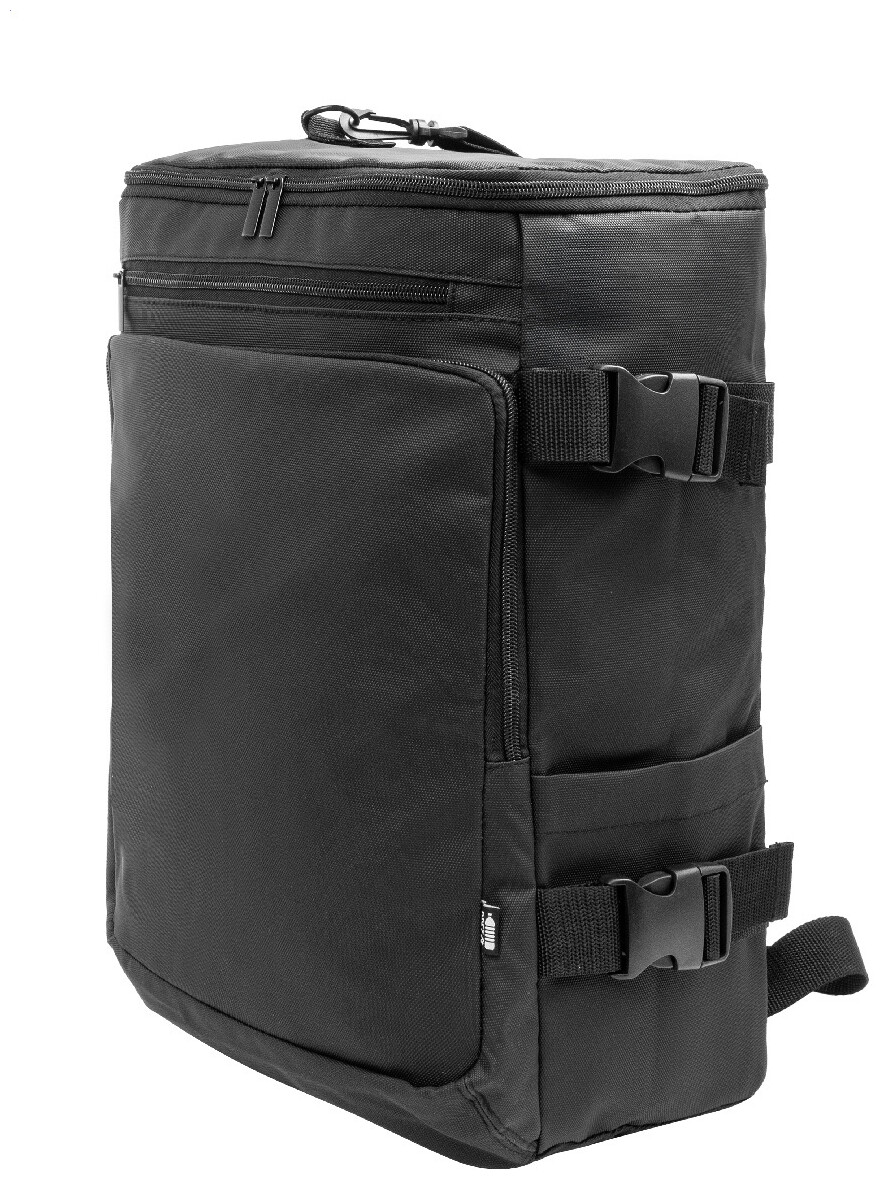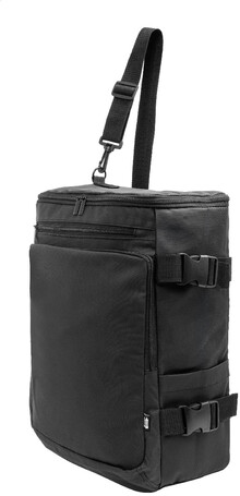 Voděodolný batoh a taška na dokumenty z RPET s dvojitou funkcí, hlavní přihrádkou na zip, dvěma předními kapsami na zip, boční kapsou, bočními popruhy s přezkou a polstrovanou přihrádkou na notebook (15"). S polstrovanými zády a odnímatelnými ramenními popruhy. Součástí je i další odnímatelný ramenní popruh pro použití jako taška na dokumenty. Polyester 600D RPET s PU zátěrem a výrazným štítkem RPET.