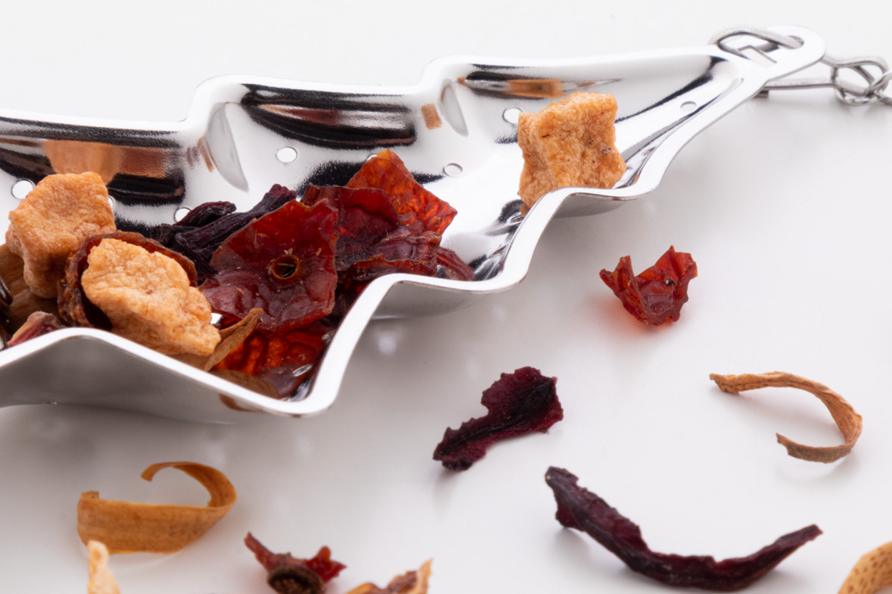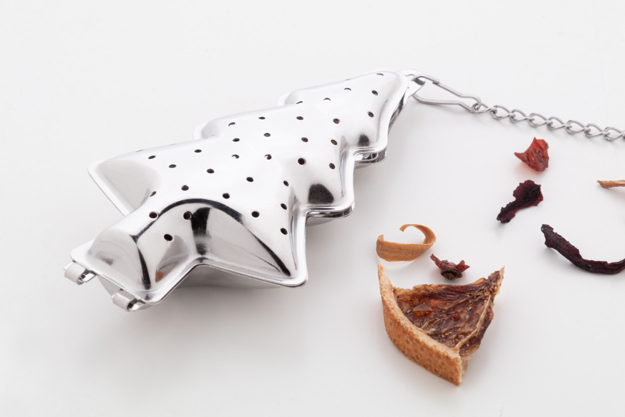 Nerezové čajítko na vánoční čaj s řetízkem a klipem. S potisknutelnou plochou na jedné straně.