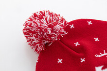 Pletená vánoční čepice z akrylu s manžetou a bambulí.