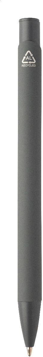 Kuličkové pero z recyklovaného hliníku s pogumovaným tělem a barevnými lesklými kovovými díly. Se speciálním povrchem pro zrcadlové gravírování, které odpovídá kovovým částem. S modrou náplní.