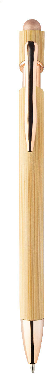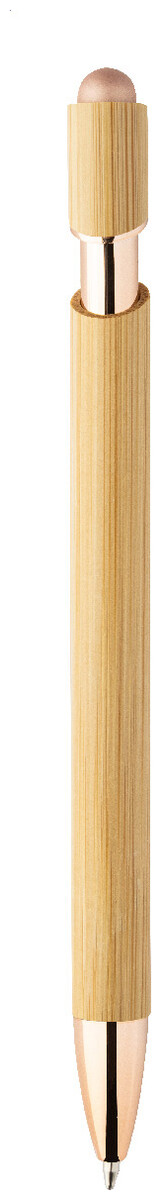 Bambusové dotykové kuličkové pero s lesklými kovovými detaily a barevným dotykovým stylusem. S modrou náplní.