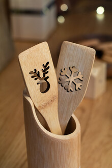 Vařečka z bambusu s vyřezaným vánočním stromečkem.