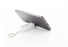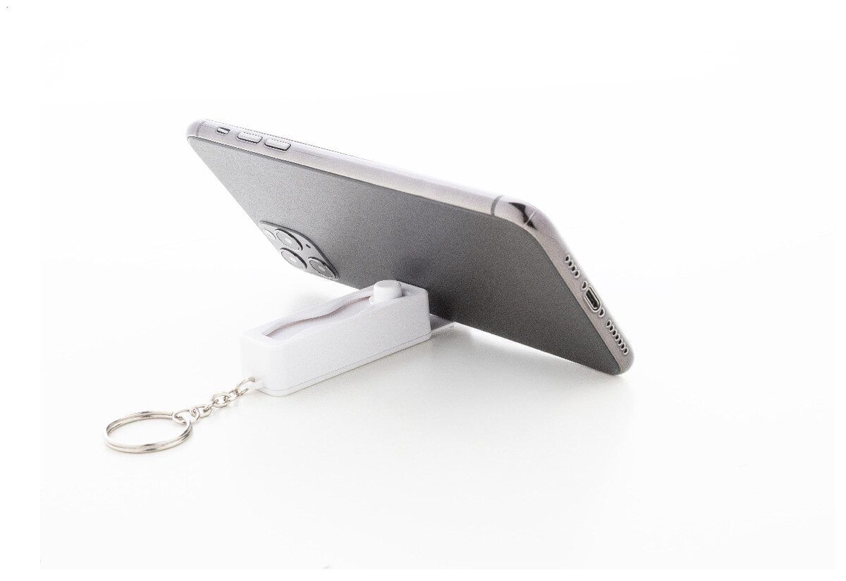 Antistresový přívěšek na klíče fidget z recyklovaného ABS materiálu s integrovaným držákem na mobil a kovovým kroužkem.