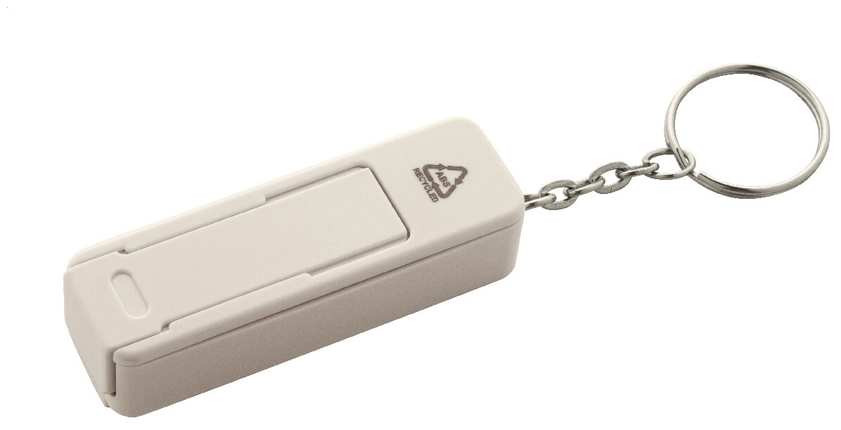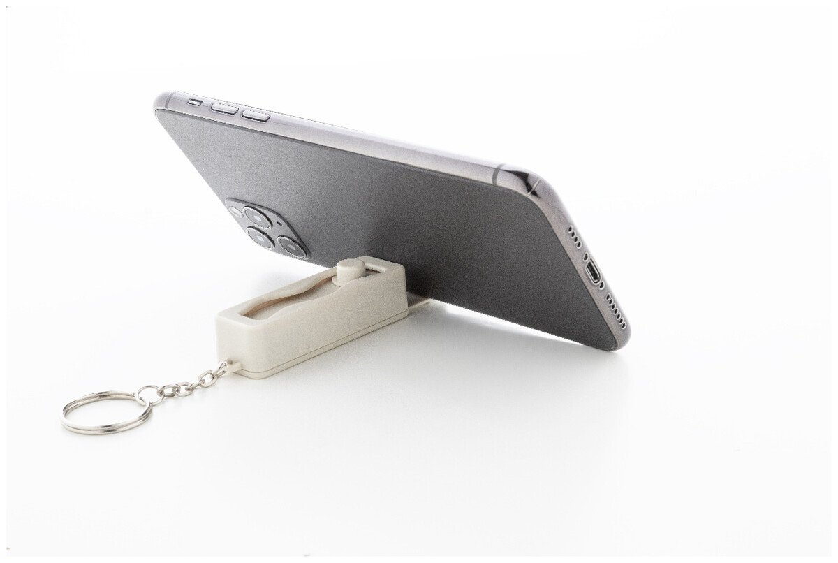 Antistresový přívěšek na klíče fidget z recyklovaného ABS materiálu s integrovaným držákem na mobil a kovovým kroužkem.