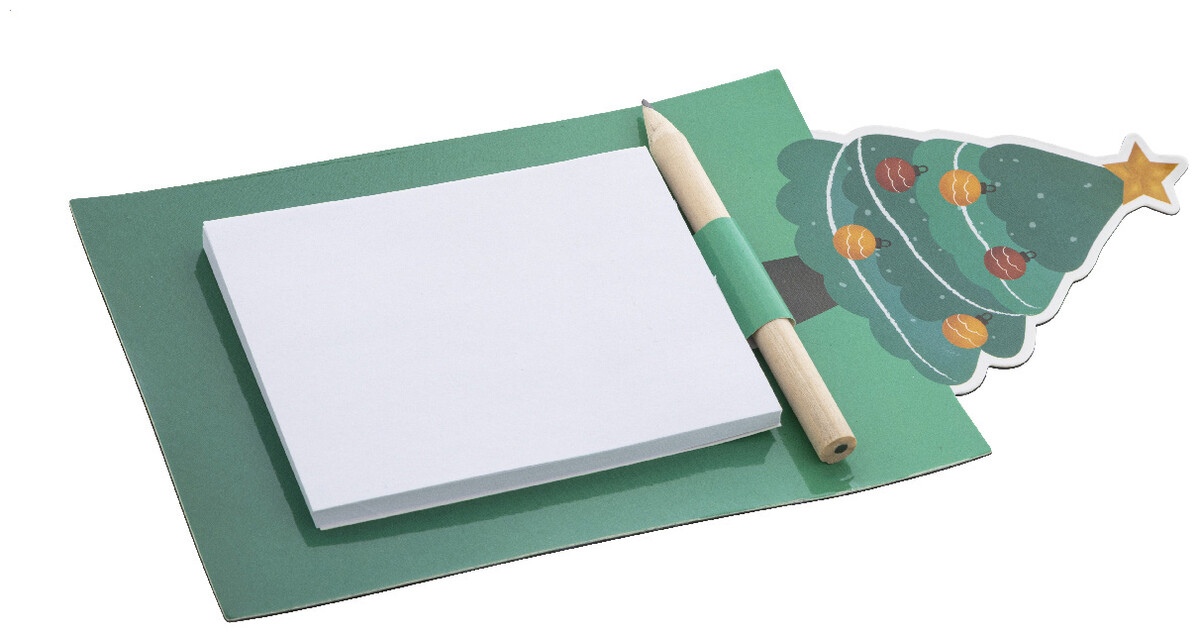 Magnet na ledničku s vánočním designem, poznámkovým blokem na 40 listů a mini dřevěnou tužkou.