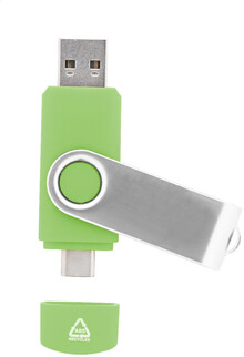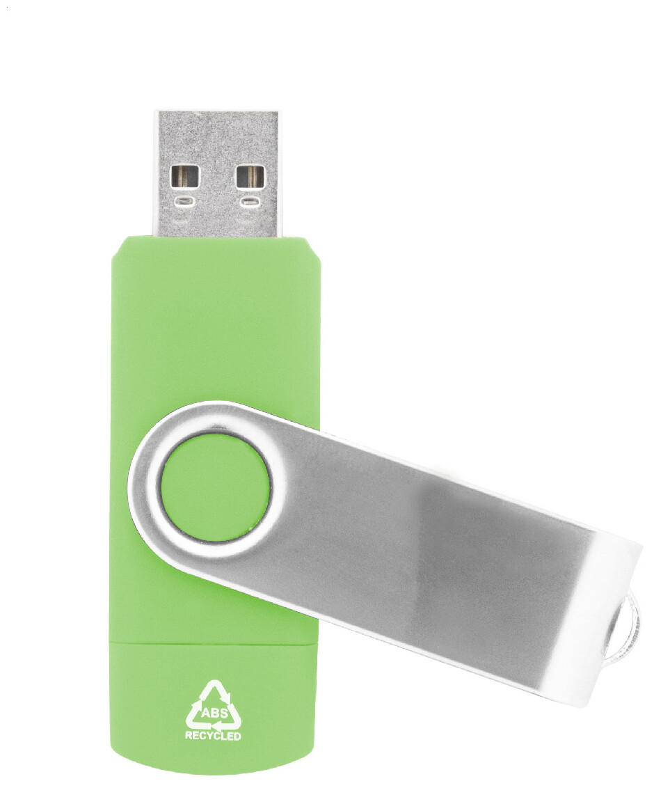 Otočný USB flash disk OTG v pouzdře z recyklovaného ABS a kovu s pamětí 8/16/32 GB. S připojeními USB a USB-C. USB 2.0.