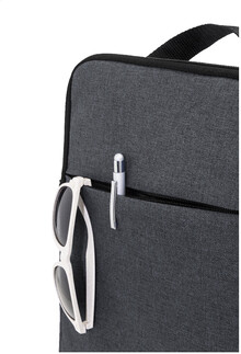 Polstrovaná taška přes rameno z polyesteru 600D RPET na dokumenty nebo notebook s přihrádkou na zip a přední kapsou na zip. Vhodná pro notebooky do velikosti 15". S nastavitelným ramenním popruhem vybaveným vertikální a horizontální polohou. S výrazným štítkem RPET.