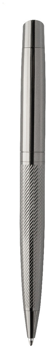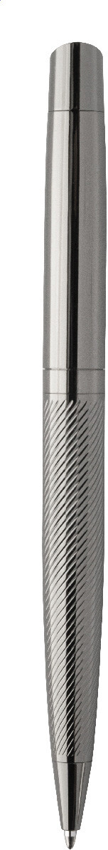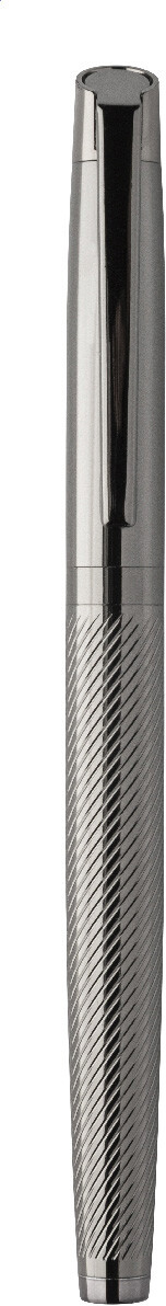 Elegantní sada kovového kuličkového pera a rolleru s diagonálně texturovaným tělem. Ve dvoubarevné dárkové krabičce s modrou náplní. Produkt značky André Philippe.
