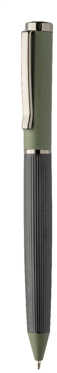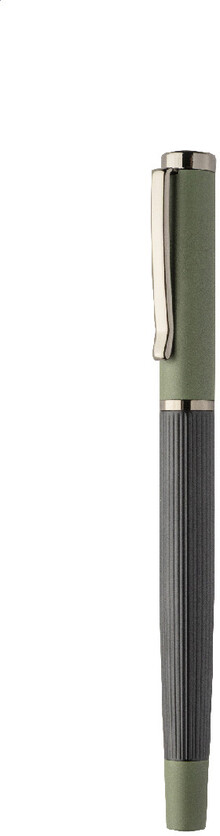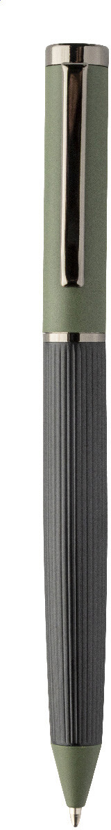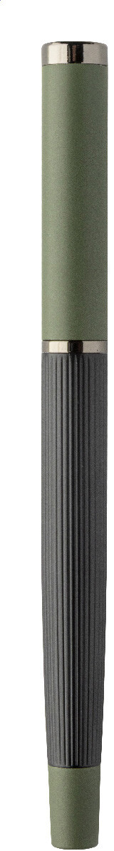 Elegantní sada kovového kuličkového pera a rolleru s pruhovaným tělem, barevnými akcenty a lesklými detaily v barvě antracit. V barevně sladěné dárkové krabičce a s modrou náplní. Produkt značky André Philippe.
