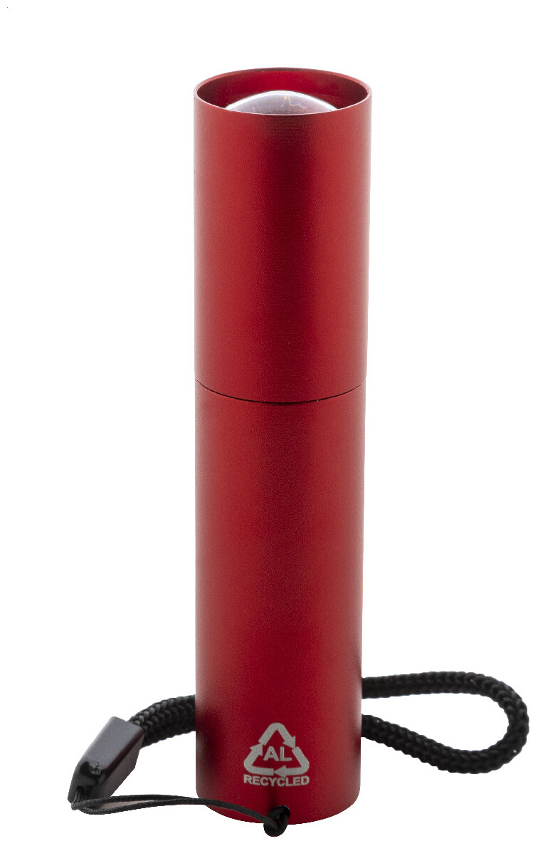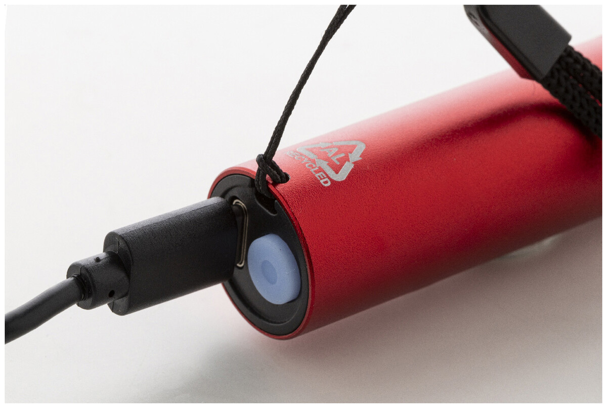 Baterka z recyklovaného hliníku s vestavěnou dobíjecí baterií USB (400 mAh) a popruhem na nošení. S vysoce výkonným COB světlem s možností zoomu a 3 světelnými režimy. Včetně nabíjecího kabelu USB.