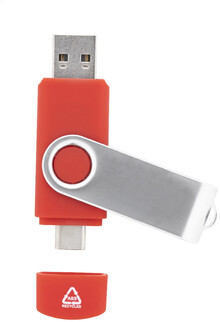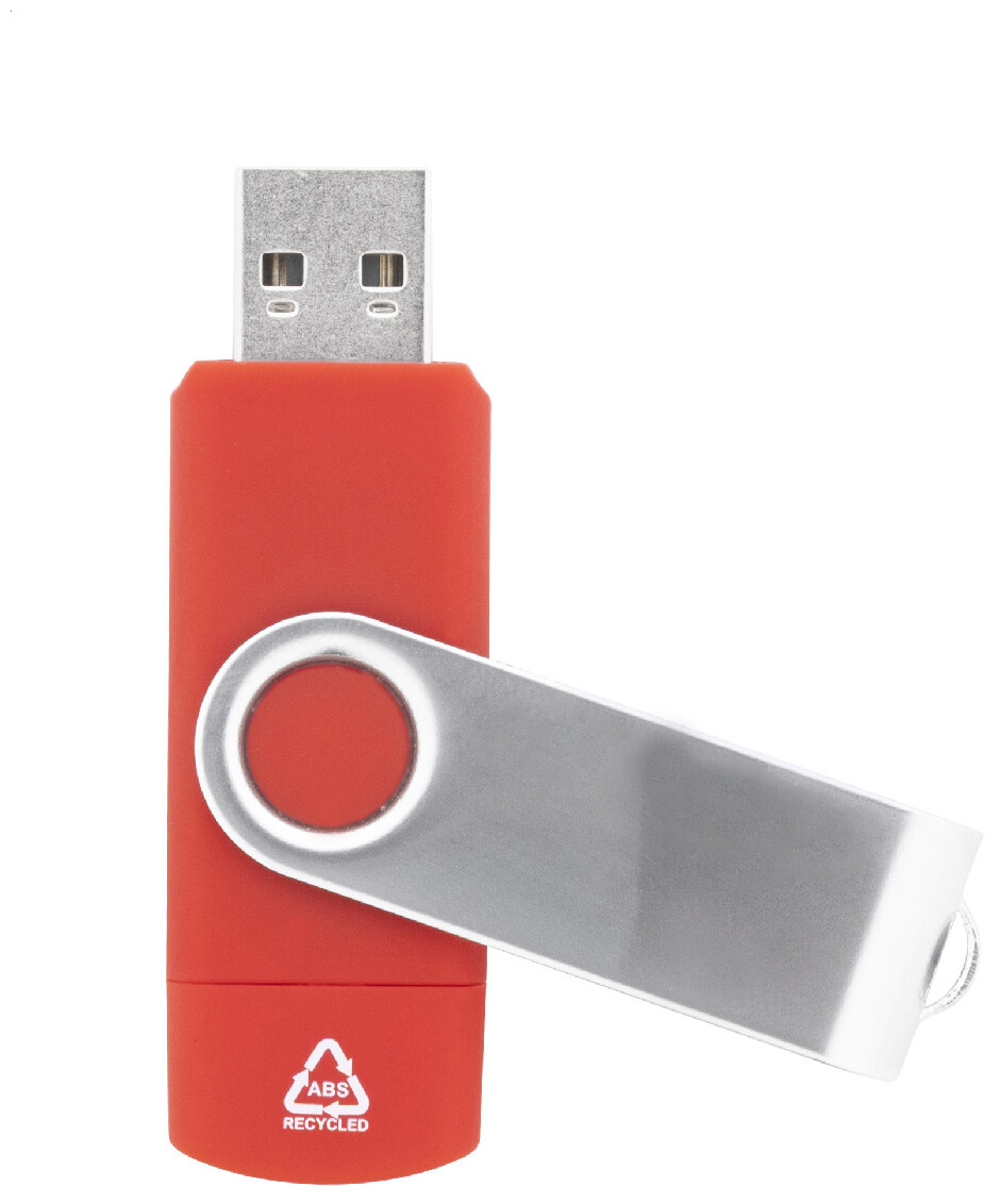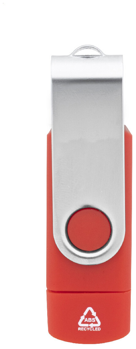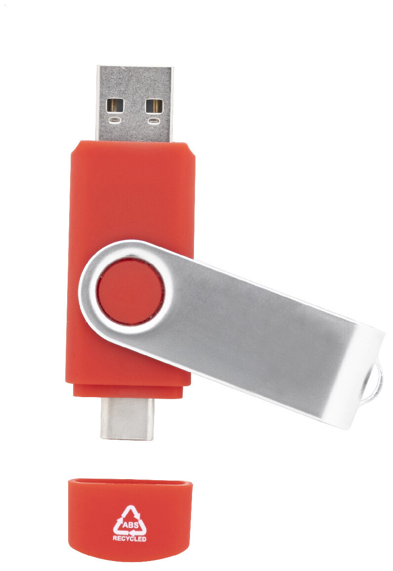 Otočný USB flash disk OTG v pouzdře z recyklovaného ABS a kovu s pamětí 8/16/32 GB. S připojeními USB a USB-C. USB 2.0.