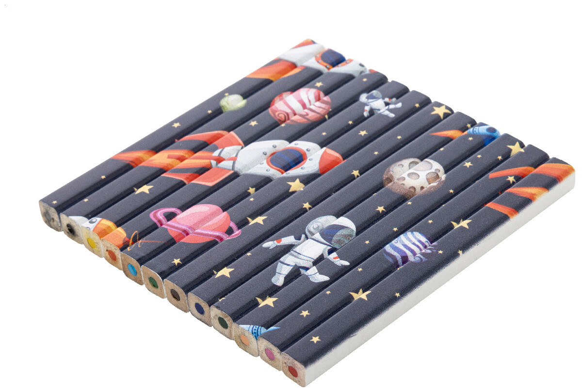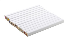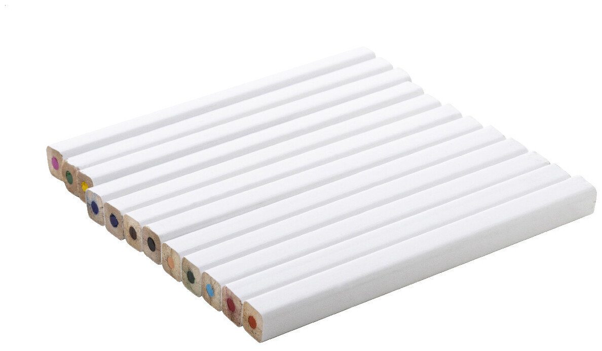 12dílná obdélníková sada dřevěných pastelek s bílou povrchovou úpravou. V krabičce z kraftového papíru s velkým okénkem. Ideální pro celoplošný UV LED tisk.