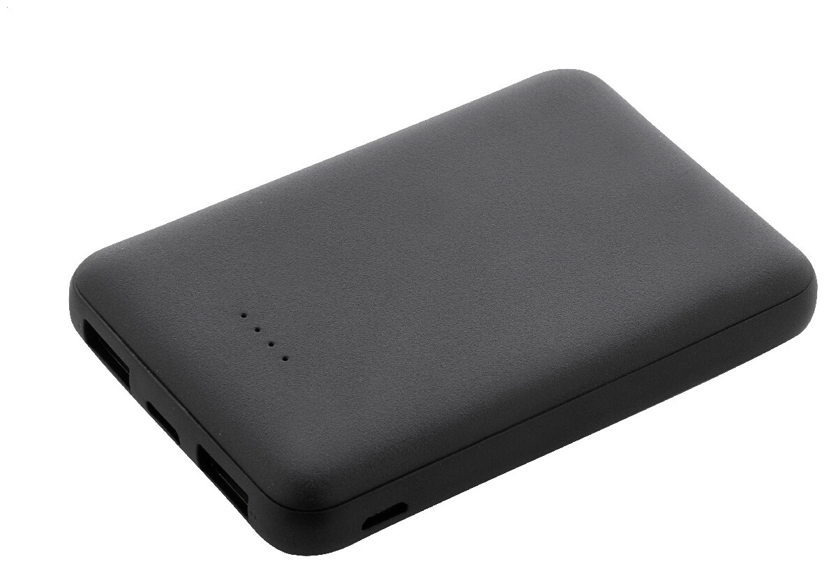 Power banka z recyklovaného ABS plastu s baterií 5 000 mAh. Se 2 USB a 1 nabíjecím portem USB-C. Vstupní porty micro USB a USB-C. Včetně nabíjecího kabelu USB.