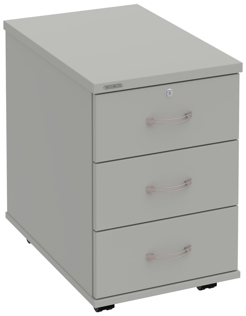 Kancelářské kontejnery nabízíme ve 4 modelech, které se liší uspořádáním zásuvek. Využití naleznou,spolu s ostatními řadami kancelářského nábytku HOBIS, ve všech kancelářských prostorech. Rozměry jsou 40 cm šířka, 60 cm hloubka a 60 cm výška. Protože jsme si vědomi nároků na zajištění bezpečnosti obsahu kontejnerů, osadili jsme většinu z nich zámky s centrálním zamykáním. Stačí zamknout jednu zásuvku a současně tak uzamknete i všechny ostatní. Díky integrovanému systému STOPCONTROL v uzamykacím mechanismu se nemusíte bát převrhnutí kontejneru nebo případného skřípnutí rukou. Systém zaručí, že při otevření jedné zásuvky se ostatní zásuvky automaticky zablokují. Stoly můžete vybírat z nabídky kancelářského nábytku HOBIS.