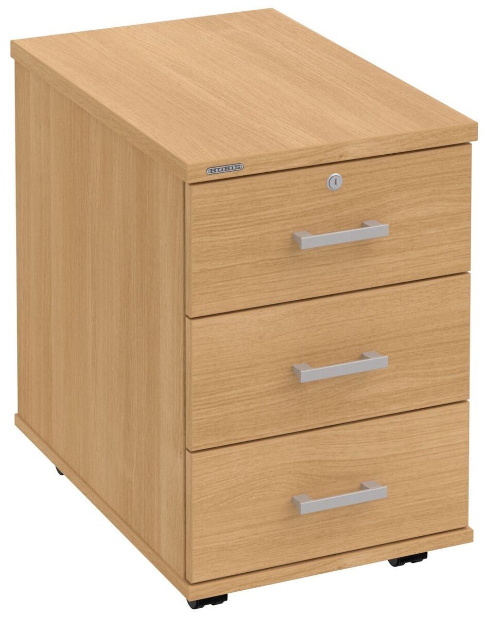Kancelářské kontejnery nabízíme ve 4 modelech, které se liší uspořádáním zásuvek. Využití naleznou,spolu s ostatními řadami kancelářského nábytku HOBIS, ve všech kancelářských prostorech. Rozměry jsou 40 cm šířka, 60 cm hloubka a 60 cm výška. Protože jsme si vědomi nároků na zajištění bezpečnosti obsahu kontejnerů, osadili jsme většinu z nich zámky s centrálním zamykáním. Stačí zamknout jednu zásuvku a současně tak uzamknete i všechny ostatní. Díky integrovanému systému STOPCONTROL v uzamykacím mechanismu se nemusíte bát převrhnutí kontejneru nebo případného skřípnutí rukou. Systém zaručí, že při otevření jedné zásuvky se ostatní zásuvky automaticky zablokují. Stoly můžete vybírat z nabídky kancelářského nábytku HOBIS.