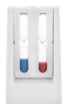 Přesýpací hodiny z recyklovaného ABS materiálu s otočnými přesýpacími hodinami s 3 a 5 minutami.