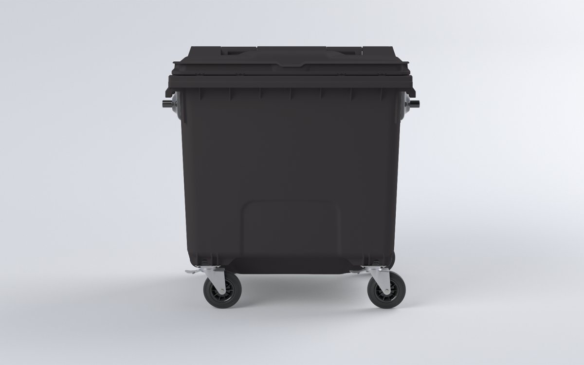 Kontejner s horním výsypem o objemu 1100 litrů je opatřen plochým víkem.