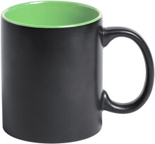 Černý keramický hrnek s barevným vnitřkem, 350 ml. Speciální povrch pro laser, kdy vygravírované logo má stejnou barvu jako vnitřek hrnku. V dárkové krabičce.