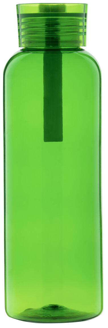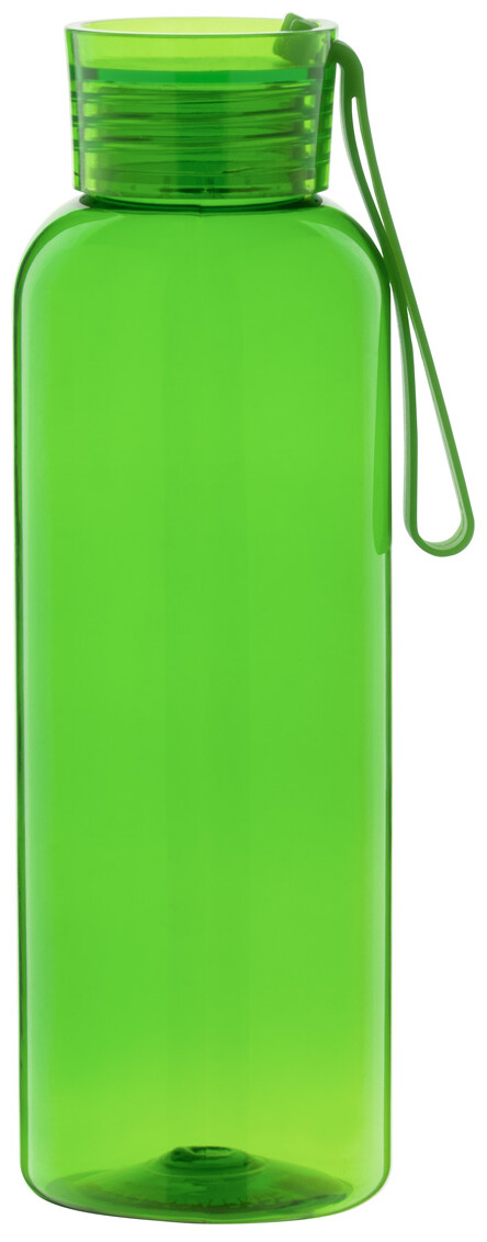 Láhev RPET s víčkem v odpovídající barvě a silikonovým popruhem, 500 ml. Nevhodné pro sycené nápoje.