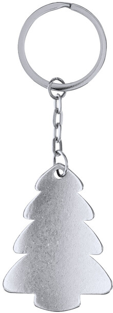 Přívěšek na klíče z recyklovaného hliníku ve tvaru vánočního stromku s kovovým kroužkem.