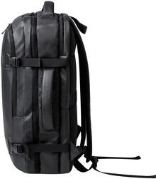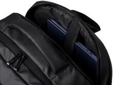 Dvoufunkční batoh a taška na dokumenty z PU kůže s přihrádkami na zip, polstrovanou přihrádkou na notebook (17") a síťovanou přihrádkou, popruhem na vozík, polstrovanými zády a ramenními popruhy.