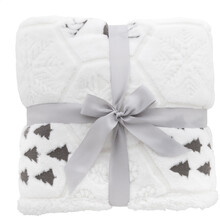 Luxusní dvouvrstvá vánoční deka z RPET s reliéfním zimním vzorem. S flanelovým fleecovým materiálem RPET 270 g/m2 a oboustrannou podšívkou z RPET sherpa fleecu 210 g/m2. Zabaleno do stuhy a tisknutelného papírového kartonu.