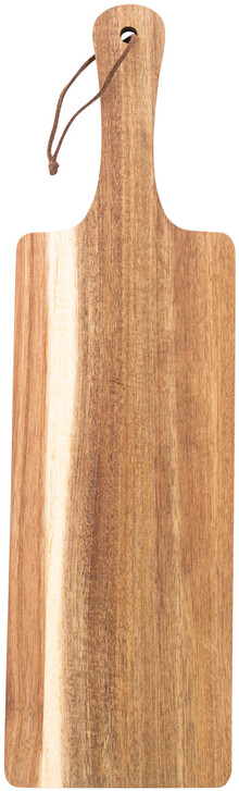 Krájecí a servírovací prkénko z akátového dřeva s rukojetí a šňůrkou z PU kůže.