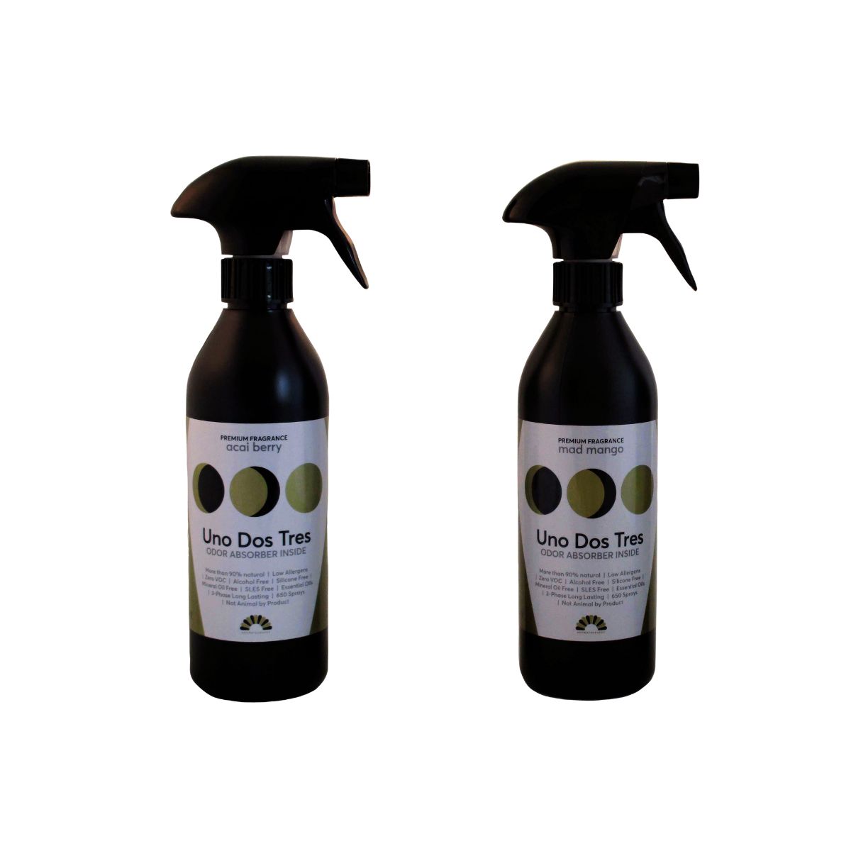 Osvěžovač vzduchu ve spreji Uno Dos Tres, plody acai, 500 ml Luxusní osvěžovač vzduchu s vůní plodů acai navržený pro použití v reprezentativních prostorách, kde je žádoucí příjemná a svěží atmosféra.