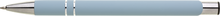 Hliníková propiska se stříbrnými doplňky a měkkým pogumovaným soft povrchemve ve světle modré barvě. Modře píšící.