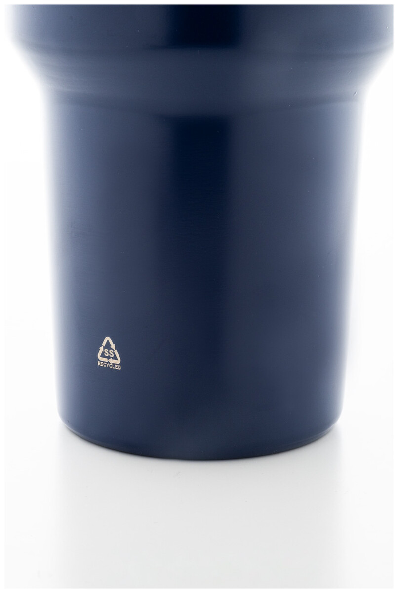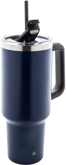 Dvouplášťový vakuově izolovaný termo hrnek z recyklované nerezové oceli s PS víčkem na pití a PP brčkem. 1200 ml.