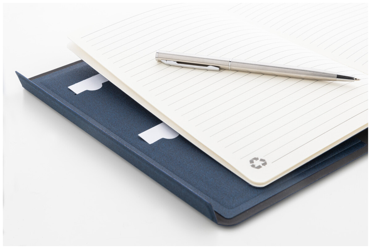 Sloha A5 na dokumenty z recyklované PU kůže s vnitřními kapsami na organizér a magnetickým zavíráním. Se 64 linkovanými listy poznámkového bloku z recyklovaného papíru.