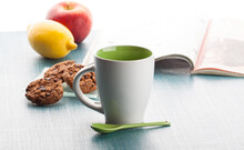 Hrnek se lžičkou - 300 ml Spoon, zelená, bílá