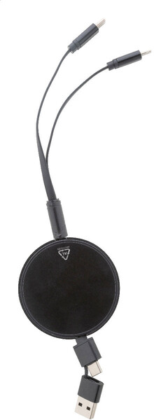 Teleskopický USB nabíjecí kabel z recyklovaného hliníku. S konektory micro USB, USB-C a Lightning. Se vstupy USB a USB-C.