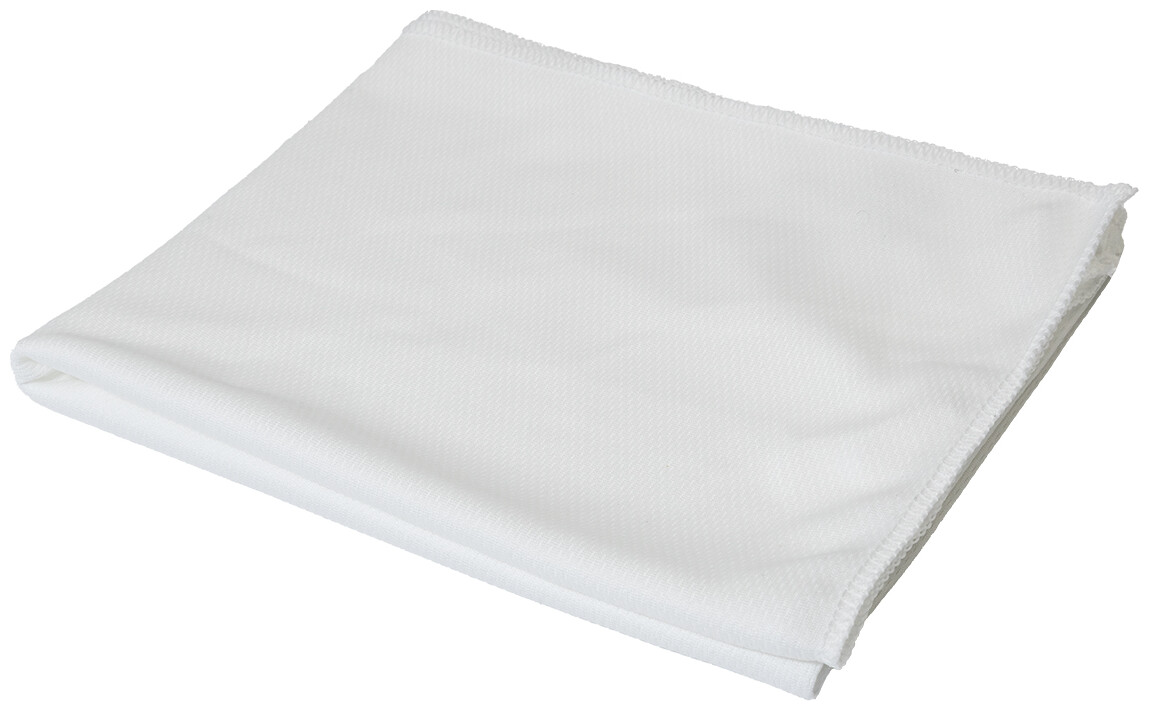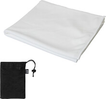 Sportovní ručník z mikrovlákna RPET v přepravním pouzdře z netkané tkaniny RPET s charakteristickou etiketou RPET. Polyester RPET, 140 g/m2.