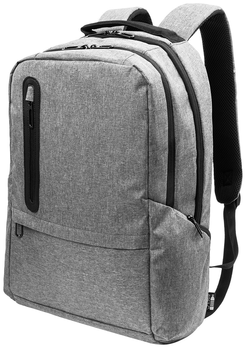 Batoh z RPET s přihrádkami na zip, 2 předními kapsami na zip, bočními kapsami na zip a polstrovanou přihrádkou na notebook (15"). S polstrovanými zády a ramenními popruhy, kapsou s ochranou proti krádeži a popruhem na kufr. Z polyesteru 300D RPET s výrazným štítkem RPET.