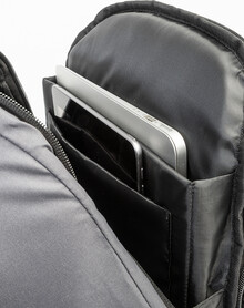 Batoh z RPET s ochranou proti krádeži s přihrádkou na zip, polstrovanou přihrádkou na notebook (15") a tablet (12"), popruhem na kufr, polstrovanými zády a ramenními popruhy. Se skrytou kapsou proti krádeži. Polyester 300D RPET. S výrazným štítkem RPET.