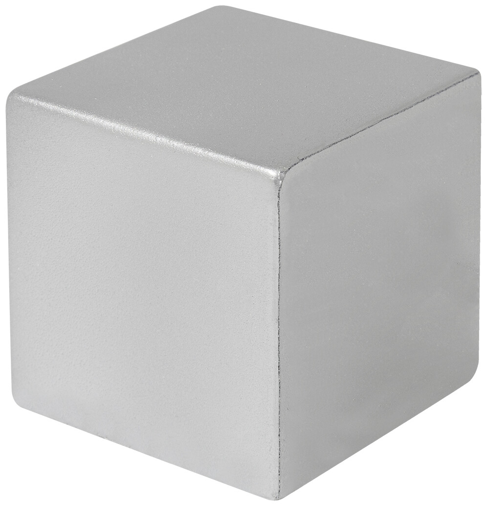 Antistres ve tvaru kostky z PU pěny s metalickým povrchem.