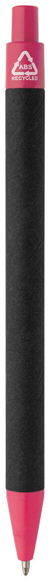 Kuličkové pero z recyklovaného papíru s černým tělem a recyklovanými ABS díly. S modrou náplní.