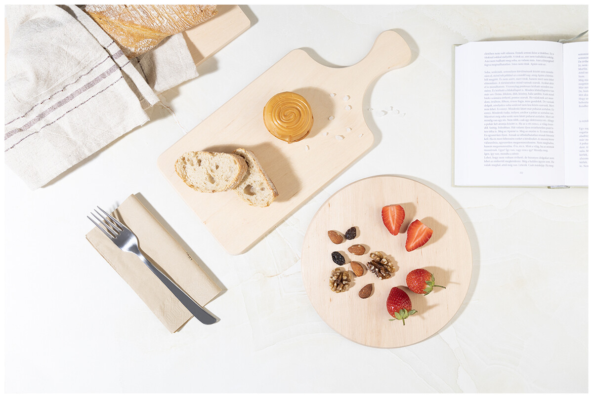 Kulaté prkénko na krájení vyrobené z jednoho kusu přírodního olšového dřeva. 100% přírodní a zcela bez lepidla.