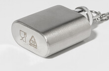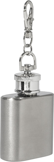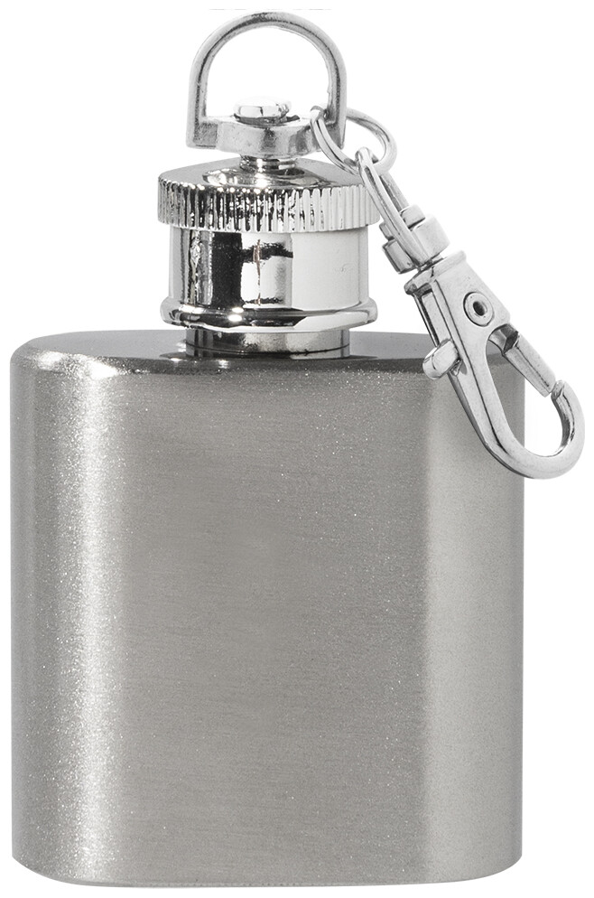 Miniaturní butylka z recyklované nerezové oceli s karabinou na klíče. 30 ml.