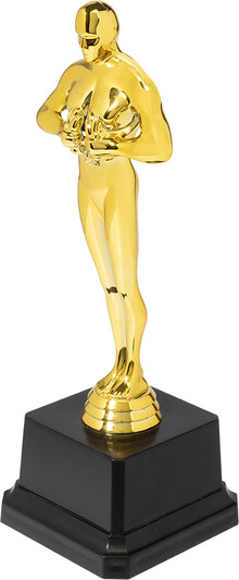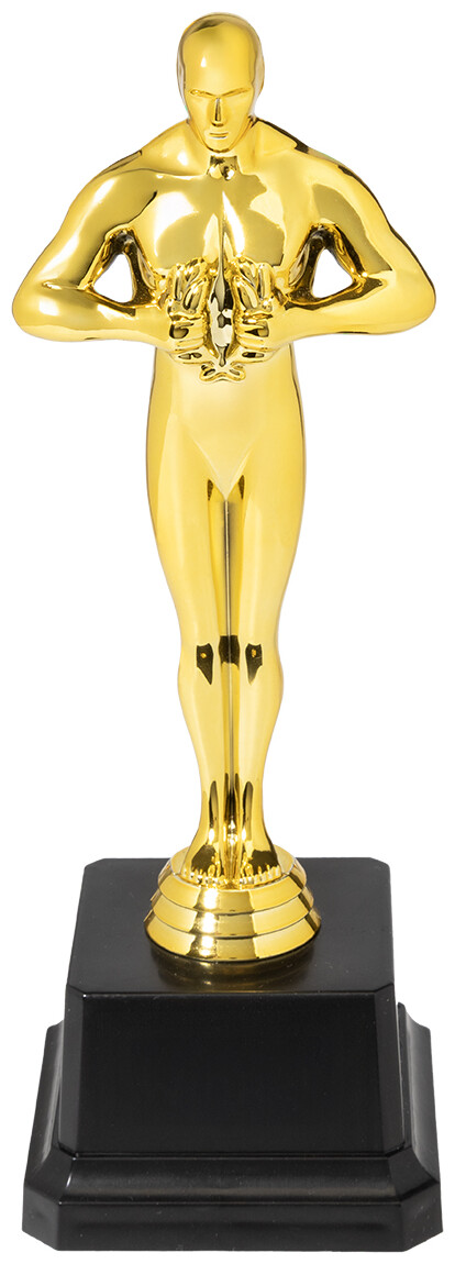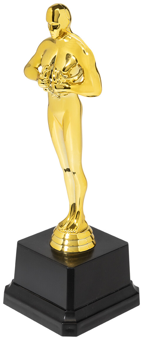 Plastová trofej s klasickou stojící postavou ve zlaté barvě na černém podstavci.