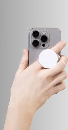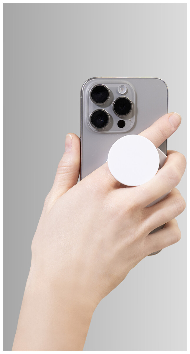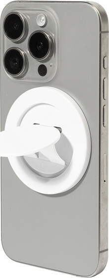 Magnetický držák na mobil z recyklovaného ABS. Včetně samolepicího kovového kroužku pro telefony bez magnetického povrchu.