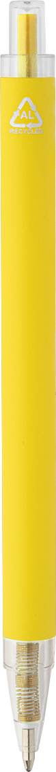 Kuličkové pero z recyklovaného hliníku s matným tělem a průhlednými RPET částmi. S modrou náplní.