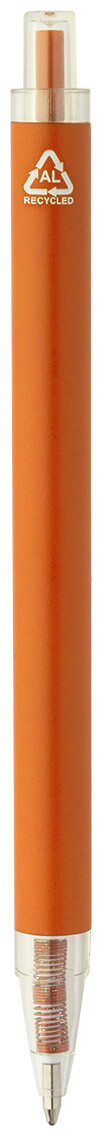 Kuličkové pero z recyklovaného hliníku s matným tělem a průhlednými RPET částmi. S modrou náplní.