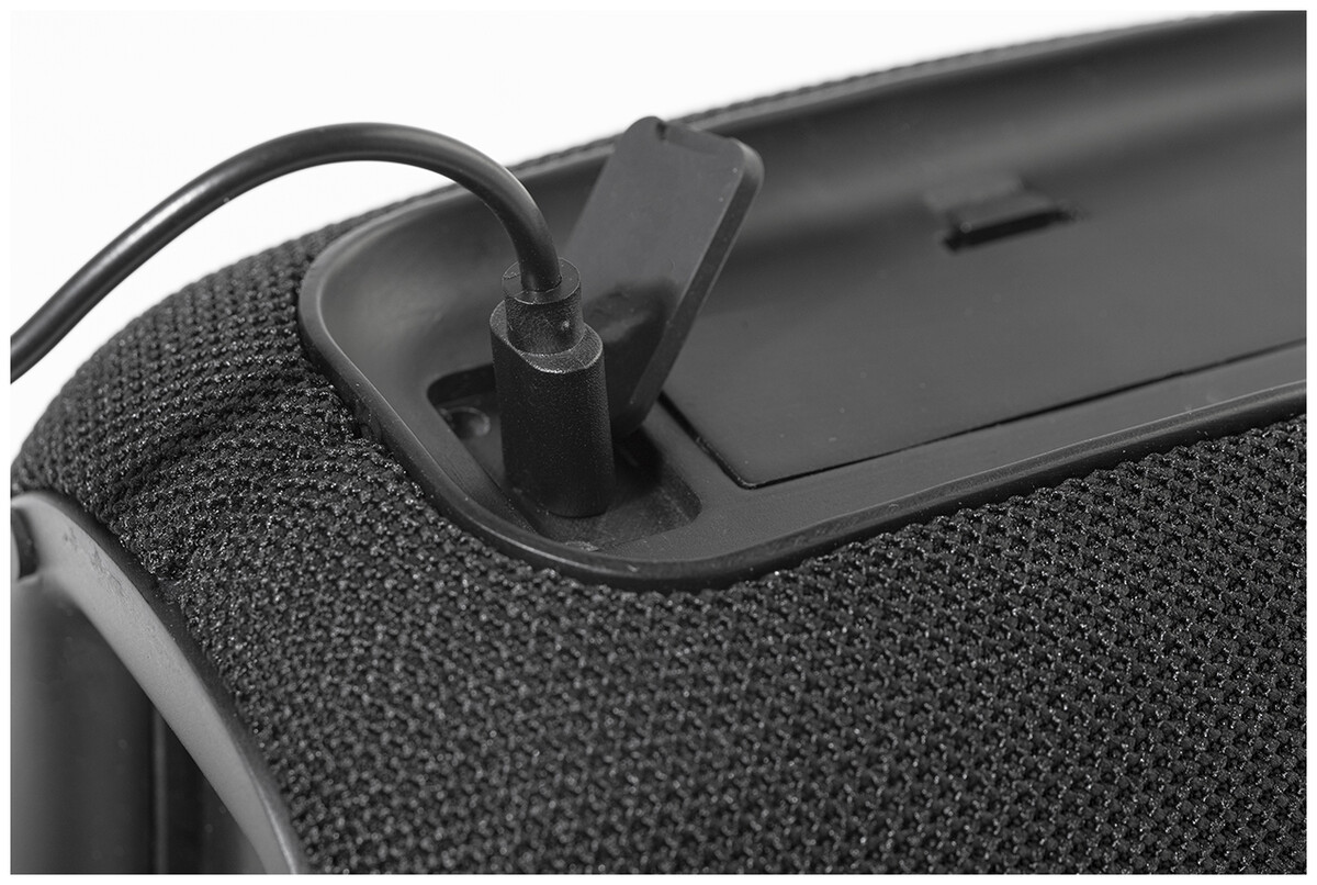 Bezdrátový reproduktor z recyklovaného ABS plastu s RPET polyesterovou síťovinou, hliníkovou karabinou a kovovým štítkem pro logo. S vestavěnou dobíjecí baterií (1800 mAh). Včetně USB nabíjecího kabelu.