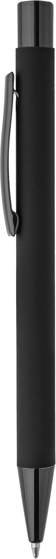 Kuličkové pero z recyklovaného hliníku s černým pogumovaným tělem a barevnými lesklými kovovými částmi. Se speciálním povrchem pro zrcadlové gravírování, které ladí s kovovými částmi. S modrou náplní.