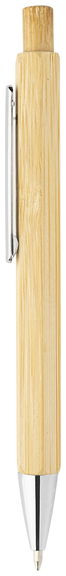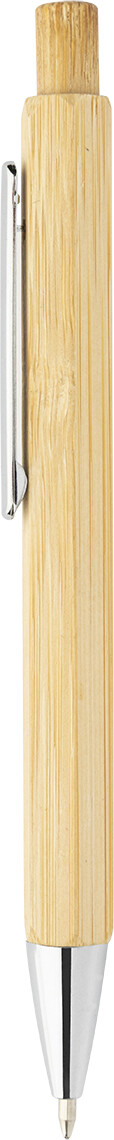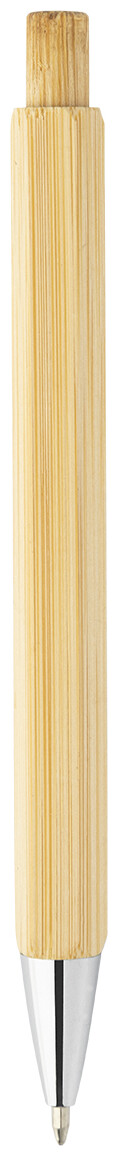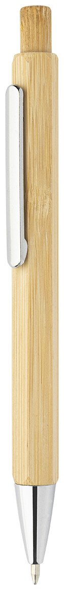 Šestihranné bambusové kuličkové pero s chromovanými částmi. S modrou náplní.