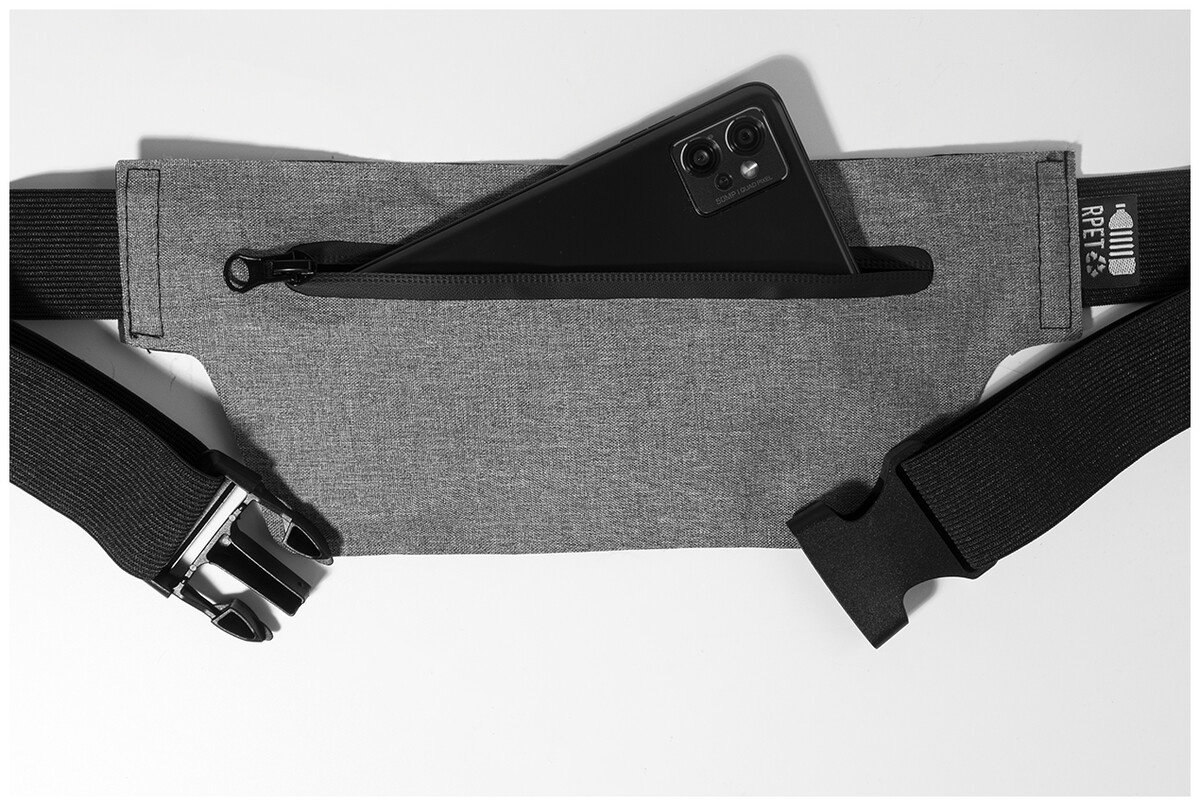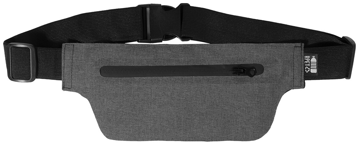 Úzká ledvinka z RPET s přihrádkou na zip a nastavitelným elastickým popruhem. 300D RPET polyester s charakteristickým štítkem RPET.