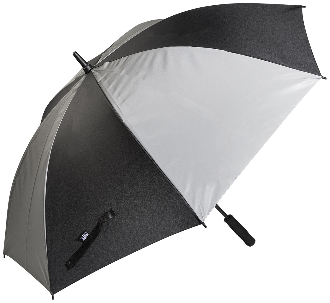 Velký, manuální větruodolný deštník se 4 panely z 190T RPET pongee a 4 panely z reflexní tkaniny. S celolaminátovým rámem a tyčí, rukojetí z EVA. 190T RPET pongee. S charakteristickým RPET štítkem.