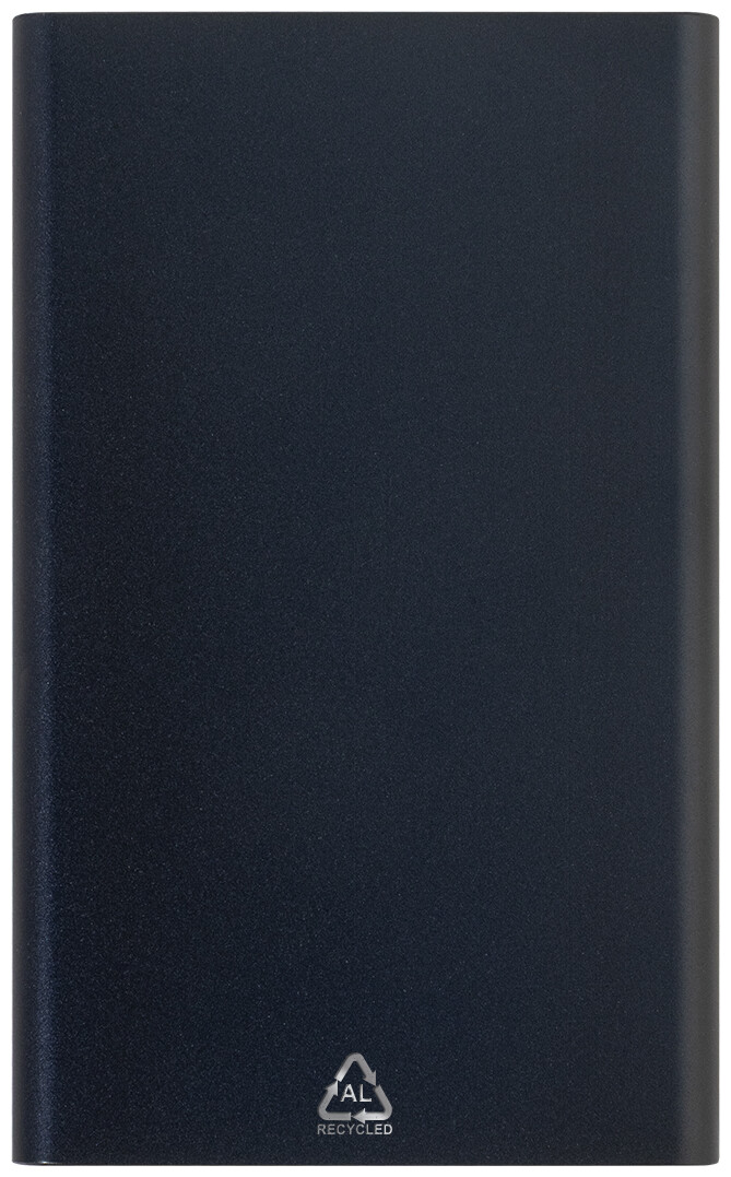 USB power banka v pouzdře z recyklovaného hliníku s 4000 mAh baterií. S 1 portem USB a 1 portem USB-C pro nabíječku. Vstupní port USB-C. Včetně USB nabíjecího kabelu.